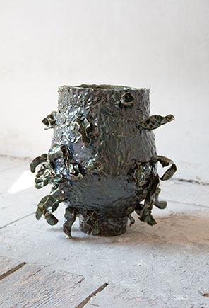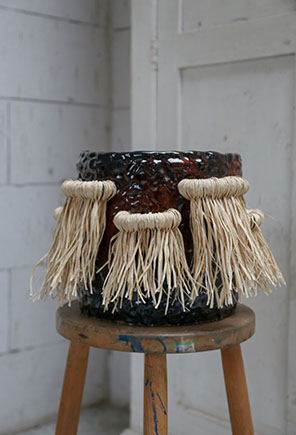 stoneware, glaze, raffia